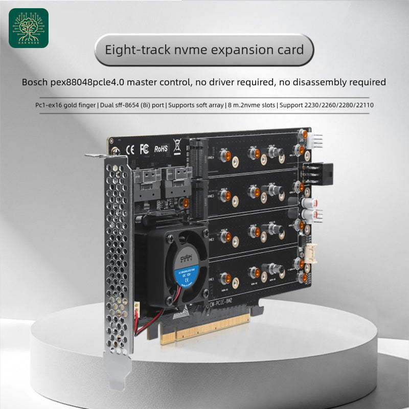 oaknode 8-Drive NVMe SSD to PCIe 4.0 X 16 Adapter Card with Active Cooling